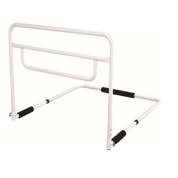 Sponda letto universale Barra per letto singola in acciaio verniciato regolabile a tre differenti livelli d’altezza. Base munita di spessori in gomma antiscivolo. Sponda letto singola in acciaio 87 x 76. Regolabile in altezza, da 47,5 a 55 cm. Per utilizzatori di peso non superiore ai 114 Kg.