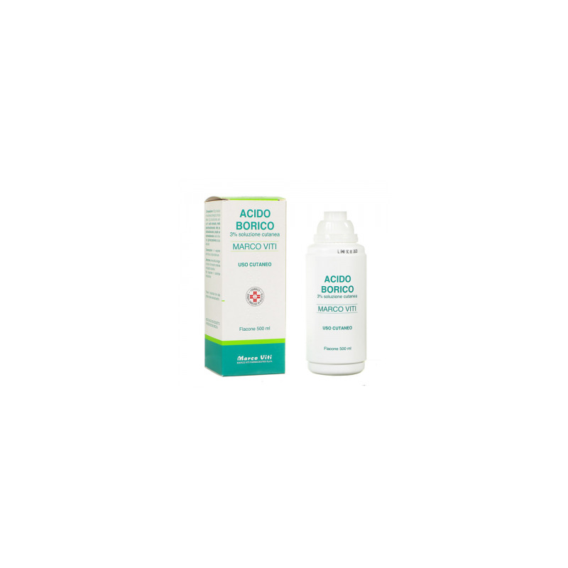 Descrizione Denominazione ACIDO BORICO MARCO VITI 3% soluzione cutanea ACIDO BORICO MARCO VITI 3% unguento Acido borico Indicazioni Antisettico per la disinfezione di ustioni minori e di aree cutanee irritate o screpolate. La soluzione si utilizza, inoltre, sotto forma di tamponi locali ad azione decongestionante. L’acido borico è indicato come antibatterico per il trattamento dell’acne. Principi Attivi 100 g di soluzione contengono: principio attivo: acido borico 3 g. Eccipienti con effetto noto: sodio benzoato. Per l’elenco completo degli eccipienti, vedere paragrafo 6.1. Eccipienti Sodio benzoato, acqua depurata. Posologia Uso esterno: applicare al bisogno sulla zona interessata. Adulti: L’acido borico può essere applicato direttamente una o due volte al giorno sulle aree infiammate in caso di pelle screpolata, irritata o secca, abrasioni, scottature lievi, scottature solari, scottature da vento o punture d’insetti. Bambini al di sopra dei 3 anni: L’acido borico può essere applicato direttamente una o due volte al giorno sulle aree infiammate associate a pelle screpolata, irritata o secca, dermatiti da pannolino, scottature lievi, scottature solari, scottature da vento o punture d’insetti. Avvertenze Un’eccessiva e prolungata applicazione su aree estese o su cute lesa può causare tossicità da accumulo. Tenere lontano dalla portata dei bambini, poiché si sono verificati decessi a seguito di ingestione accidentale. Il medicinale non deve essere utilizzato per uso oftalmico. Informazioni importanti su alcuni eccipienti: Acido borico Marco Viti 3% soluzione cutanea contiene 0,25 g di sodio benzoato per 100 ml: può causare irritazioni locali. Conservazione Tenere il contenitore ben chiuso per proteggere il medicinale dalla luce. Controindicazioni L’acido borico è controindicato in caso di: - ipersensibilità al principio attivo o ad uno qualsiasi degli eccipienti elencati al paragrafo 6.1; - estese lesioni cutanee; - bambini di età inferiore a 3 anni. Effetti indesiderati L’assorbimento dell’acido borico attraverso la cute integra è inferiore allo 0,5%; tuttavia può aumentare se somministrato accidentalmente per via sistemica o applicato su ferite o lesioni. Di seguito sono riportati gli effetti indesiderati dell’acido borico verificatisi in caso di tossicità da accumulo, dopo esposizione prolungata e a seguito di assorbimento sistemico. Tali effetti sono organizzati secondo la classificazione sistemica organica MedDRA. Non sono disponibili dati sufficienti per stabilire la frequenza dei singoli effetti elencati. Patologie della cute e del tessuto sottocutaneo: Dermatiti, eruzioni cutanee, alopecia. Patologie gastrointestinali. Disturbi gastro-intestinali: nausea, vomito, diarrea. Disturbi del metabolismo e della nutrizione: Anoressia. Patologie endocrine: Disordini mestruali. Patologie del sistema emolinfopoietico: Anemia. Patologie del sistema muscolo scheletrico e del tessuto connettivo: Debolezza. Disturbi psichiatrici: Confusione. Patologie del sistema nervoso: Convulsioni. Segnalazione delle reazioni avverse sospette. La segnalazione delle reazioni avverse sospette che si verificano dopo l’autorizzazione del medicinale è importante, in quanto permette un monitoraggio continuo del rapporto beneficio/rischio del medicinale. Agli operatori sanitari è richiesto di segnalare qualsiasi reazione avversa sospetta tramite il sistema nazionale di segnalazione all’indirizzo: www.agenziafarmaco.gov.it/it/responsabili. Sovradosaggio Il rischio di intossicazione acuta per via cutanea appare un evento trascurabile visto il suo basso indice di assorbimento transcutaneo. L’acido borico può essere assorbito in quantità tossiche attraverso il tratto gastrointestinale, per inalazione o attraverso lesioni cutanee. Sintomi In seguito all’uso di grandi quantità di acido borico su ferite o piaghe si sono verificati, specialmente nei bambini, casi di avvelenamento e di morte. Il meccanismo dell’azione tossica è sconosciuto e numerosi sono gli organi e sistemi colpiti in particolare la cute, il rene e il tubo digerente. Gli effetti tossici colpiscono anche il SNC e il polmone con lesioni, prevalentemente emorragiche, di genesi oscura. I principali sintomi di avvelenamento da acido borico sono il vomito, la diarrea, dolori viscerali, eritema cutaneo da desquamazione, stimolazione del SNC seguito da depressione, irrequietezza, cefalea. Frequenti sono anche l’acidosi metabolica e gravi squilibri idrosalini. Inoltre, l’acido borico in queste situazioni può provocare convulsioni, variazioni della temperatura corporea e danno renale che può essere evidenziato con oliguria. La morte, in seguito a collasso circolatorio e shock non trattato, può avvenire entro 3-5 giorni. Si possono anche verificare cianosi, delirio, convulsioni e coma (HSDB). Casi di gravi intossicazioni si sono manifestati con disturbi gastrointestinali (73%), sul sistema nervoso centrale (67%) e lesioni della pelle (76%). I sintomi dell’avvelenamento cronico includono anoressia, confusione, debilitazione, dermatite, disordini mestruali, anemia, convulsioni e alopecia (vedere paragrafo 4.8). Trattamento Nessun trattamento è necessario se la dose assunta è inferiore a 50 mg/kg. Per ingestione di dosi superiori, si effettua la lavanda gastrica con sospensione di carbone attivo e purgante salino. Se la quantità assorbita supera i 100 mg/kg, anche se il paziente è ancora asintomatico, bisogna istituire subito una diuresi forzata, allo scopo di accelerare l’eliminazione e proteggere il rene dagli effetti tossici; ai primi segni di insufficienza renale e di sovradosaggio idrico si deve sostituire la diuresi forzata con dialisi peritoneale o emodialisi. La restante terapia è sintomatica e di rianimazione. Gravidanza Gravidanza: Non sono disponibili dati clinici relativi a gravidanze esposte. Gli studi su animali sono insufficienti per evidenziare gli effetti sullo sviluppo embrionale/fetal