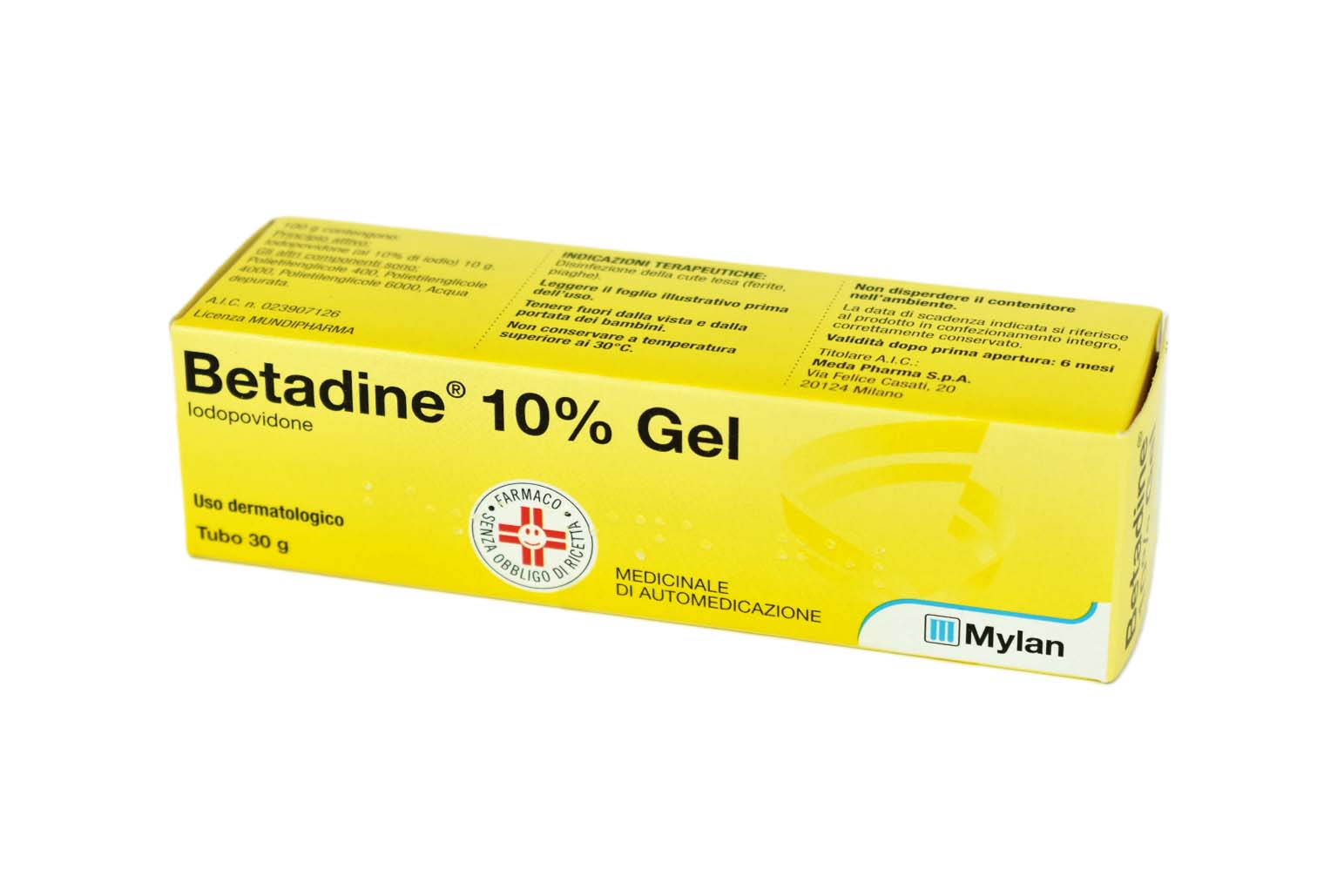 Betadine 10% Gel Dermatologico Cute Lesa Tubo da 30g. Indicazioni Betadine 10% Gel: Disinfezione della cute lesa (ferite, piaghe ecc..). Betadine 10% Soluzione cutanea, alcolica: Disinfezione e pulizia della cute lesa (ferite, piaghe ecc..). Betadine 1% Collutorio: Disinfezione della mucosa orale. Betadine 10% Garze impregnate: Disinfezione della cute lesa (ferite, piaghe). Controindicazioni Ipersensibilità verso i componenti. Usare con precauzione in soggetti con patologie tiroidee. Non usare in bambini di età inferiore ai 6 mesi. Il collutorio non deve essere usato nei bambini al di sotto dei 6 anni. Posologia Betadine 10% Soluzione cutanea, alcolica: Si applica direttamente sulla cute per la disinfezione prima, durante e dopo interventi operatori. Si può coprire la parte con garze e bende adesive. Applicare 2 volte al giorno uno strato della soluzione di colore marrone fino ad ottenere una colorazione di intensità media; si forma una pellicola superficiale che non macchia. Una quantità di 5 ml di soluzione (contenente 50 mg di iodio) è sufficiente a trattare una'area di circa 15 cm di lato. NON SUPERARE LE DOSI CONSIGLIATE. Betadine 10% Gel: Applicare 2 volte al giorno secondo necessità direttamente sulla zona colpita uno strato leggero di gel. 3 g di gel pari a circa 15 cm (contenenti 30 mg di iodio) sono sufficienti a trattare una'area di 10 cm di lato. NON SUPERARE LE DOSI CONSIGLIATE. Betadine 1% Collutorio: Diluire a proprio gusto, solo quando necessario, tenendo presente che l'efficacia è mantenuta alla diluizione di 1 parte di Betadine per 2 parti di acqua, e fare gargarismi, 2-3 volte al giorno. NON SUPERARE LE DOSI CONSIGLIATE. Betadine 10% Garze impregnate: Applicare 1 garza, 1-3 volte al dì. NON SUPERARE LE DOSI CONSIGLIATE. Avvertenze Non usare per trattamenti prolungati. Dopo breve periodo di trattamento senza risultati apprezzabili consultare il medico. Solo per uso esterno. L'uso specie se prolungato può dare origine a fenomeni di sensibilizzazione. In tal caso interrompere il trattamento ed adottare idonee misure terapeutiche. Interrompere il trattamento almeno 10 giorni prima di effettuare una scintigrafia con iodio marcato. In caso di impiego per periodi prolungati su estese superfici corporee, su mucose o sotto bendaggio occlusivo, in particolare nei bambini e nei pazienti con disordini tiroidei, praticare test di funzionalità tiroidea. In età pediatrica usare solo in casi di effettiva necessità e sotto controllo medico. L'ingestione o l'inalazione accidentale di alcuni disinfettanti può avere conseguenze gravi, talvolta fatali. Evitare il contatto con gli occhi. Interazioni Evitare l'uso contemporaneo di altri antisettici e detergenti. Non impiegare sulla parte trattata, contemporaneamente, saponi o pomate contenenti mercurio o composti del benzoino. Effetti Indesiderati In qualche caso bruciore od irritazione: in tal caso interrompere il trattamento. La reazione dello iodio con i tessuti lesi può ritardarne la cicatrizzazione. Può interferire con le prove di funzionalità tiroidea. Gravidanza Usare solo in caso di effettiva necessità e sotto il diretto controllo del medico.