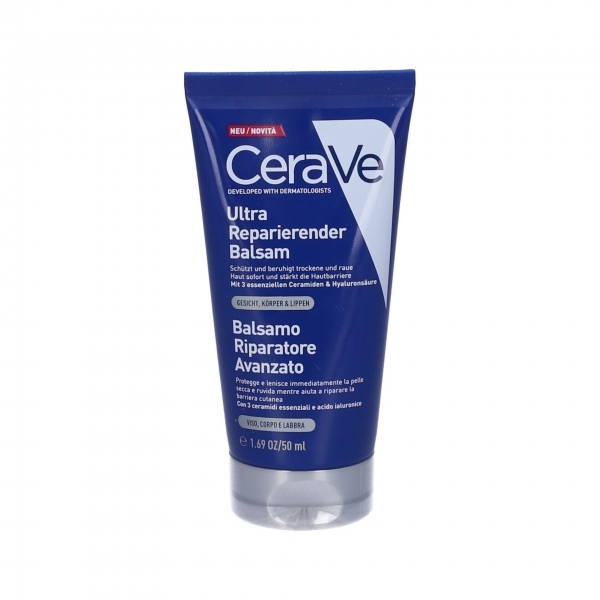 Il Balsamo Riparatore Intensivo Cerave è un multiuso adatto a tutta la famiglia che agisce come uno scudo per dare immediatamente sollievo, proteggere e riparare la pelle secca, screpolata e danneggiata. Questo prodotto favorisce la riparazione della pelle e il ripristino della barriera cutanea di viso, corpo, labbra, mani e piedi. La sua texture ricca si assorbe rapidamente e idrata intensamente per 24h. Formulato con 3 Ceramidi Essenziali, acido ialuronico e vaselina., il Balsamo Riparatore Cerave è formulato senza profumo e, per questo, adatto anche alla pelle sensibile dei lattanti di più di 1 mese. È adatto all’uso quotidiano in caso di secchezza, screpolature e arrossamenti, ma anche a un utilizzo SOS in caso di bruciature, suture e lesioni. È, inoltre, possibile inserirlo, al bisogno, all’interno della propria routine di skincare per fare slugging , favorendo l’assorbimento degli attivi e idratando in profondità. Le caratteristiche del prodotto possono essere così schematizzate: contiene 3 Ceramidi Essenziali per ripristinare la barriera protettiva della pelle, Acido Ialuronico per aiutare a trattenere la naturale idratazione della cute e Vaselina per creare una barriera fisica a protezione della cute e favorire l’assorbimento degli attivi prodotto a elevata tollerabilità anche adatto ai lattanti a partire da un mese senza profumo, ipoallergenico, non unge la pelle risulta lenita, protetta dalla secchezza e riparata aiuta a prevenire la perdita di acqua trans epidermica per una pelle idratata fino a 8 ore Il 96,7% dei consumatori percepisce la pelle lenita immediatamente dopo l’applicazione, il 100% dei consumatori percepisce la pelle idratata immediatamente dopo l’applicazione. La lista completa degli ingredienti è la seguente: • PETROLATUM • PARAFFINUM LIQUIDUM / MINERAL OIL • CERA MICROCRISTALLINA / MICROCRYSTALLINE WAX • PARAFFIN • CAPRYLIC/CAPRIC TRIGLYCERIDE • DIMETHICONE • AQUA / WATER • CERAMIDE NP • CERAMIDE AP • CERAMIDE EOP • CARBOMER • TRIETHYL CITRATE • SODIUM LAUROYL LACTYLATE • SODIUM HYALURONATE • CHOLESTEROL • TOCOPHERYL ACETATE • TOCOPHEROL • CAPRYLYL GLYCOL • SYNTHETIC WAX • PANTHENOL • PHYTOSPHINGOSINE • XANTHAN GUM • BENZOIC ACID Modalità d'uso Applicare su viso, corpo e labbra al bisogno avendo cura di evitare il contatto con gli occhi. In caso di contatto con gli occhi risciacquare immediatamente e abbondantemente. Per un maggiore effetto idratante e lenitivo, applicare il Balsamo Riparatore dopo aver effettuato una detersione delicata e aver applicato un prodotto idratante. Formato Tubetto da 50ml. Responsabile: CeraVe Indirizzo: 62, Quai Charles Pasqua – 92300 LEVALLOIS-PERRET France Email: servizioconsumatoricerave.corpit@loreal.com Avviso sicurezza: Non sono necessarie precauzioni specifiche per l'uso di questo prodotto in condizioni normali o ragionevolmente prevedibili di utilizzo.