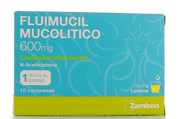 CATEGORIA FARMACOTERAPEUTICA Preparati per la tosse e le malattie da raffreddamento: mucolitici. PRINCIPI ATTIVI 600 mg compresse effervescenti. Ogni compressa contiene: N-acetilcisteina mg 600. 600 mg granulato per soluzione orale senza zucchero. Ogni bustina contiene: N-acetilcisteina mg 600. 600 mg/15 ml sciroppo. 15 ml di sciroppo contengono: N-acetilcisteina mg 600. 200 mg, compresse effervescenti. Una compressa contiene: N-acetilcisteina mg 200. 200 mg,compresse orosolubili. Una compressa contiene: N-acetilcisteina mg 200. 200 mg, granulato per soluzione orale. Una bustina contiene: N-acetilcisteina mg 200. 200 mg, granulato per soluzione orale senza zucchero. Una bustina contiene: N-acetilcisteina mg 200. 100 mg, granulato per soluzione orale. Una bustina contiene: N-acetilcisteina mg 100. 100mg, granulato per soluzione orale senza zucchero. Una bustina contiene: N-acetilcisteina mg 100. 100 mg/5 ml, sciroppo. Un flacone da 150 ml contiene: N-acetilcisteina g 3,000 (corrispondenti a 100 mg/5 ml di sciroppo). Un flacone da 200 ml contiene: N-acetilcisteina g 4,000 (corrispondenti a 100 mg/5 ml di sciroppo). ECCIPIENTI 600 mg granulato per soluzione orale senza zucchero: aspartame, aroma arancia, sorbitolo. 600 mg compresse effervescenti: acido citrico anidro, aroma limone, aspartame, sodio bicarbonato. 600 mg/15 ml sciroppo flacone 200 ml: metile paraidrossibenzoato, propile paraidrossibenzoato, sodio edetato, carmellosa, saccarina sodica, aroma granatina, aroma fragola, sorbitolo, sodio idrossido, acqua depurata. 200 mg comprese orosolubili: acido citrico anidro, sorbitolo, mannitolo, polietilenglicole 6000, povidone, sodio bicarbonato, aroma limone, aroma mandarino, aspartame, magnesio stearato, cellulosa microcristallina. 200 mg granulato per soluzione orale senza zucchero: sorbitolo, aspartame, aroma arancia. 200 mg granulato per soluzione orale: granulare di succo di arancia; aroma di arancia; saccarina; E 110; saccarosio. 200 mg comprese effervescenti: acido citrico anidro, sodio bicarbonato, aroma limone, aspartame. 100 mg granulato per soluzione orale: granulare di succo di arancia; aroma di arancia; saccarina; E 110; saccarosio. 100 mg granulato per soluzione orale senza zucchero: sorbitolo; aspartame; aroma arancia. 100 mg/5 ml sciroppo flacone 150 ml: metile paraidrossibenzoato, sodio benzoato, sodio edetato, sodio carbossimetilcellulosa, aroma lampone, sodio saccarinato, sodio idrossido, acqua depurata. 100 mg/5 ml sciroppo flacone 200 ml: metile paraidrossibenzoato, sodio benzoato, sodio edetato, sodio carbossimetilcellulosa, sodio ciclamato, sucralosio, aroma lampone, sodio saccarinato, sodio idrossido, acqua depurata. INDICAZIONI Trattamento delle affezioni respiratorie caratterizzate da ipersecrezione densa e vischiosa. CONTROINDICAZIONI/EFF.SECONDARI Ipersensibilita' al principio attivo o ad uno qualsiasi degli eccipienti. Bambini di eta' inferiore ai 2 anni. Gravidanza e allattamento con latte materno. POSOLOGIA Adulti: 1 bustina da 200 mg granulato per soluzione orale (con o senza zucchero) o 2 bustine di Fluimucil mucolitico 100 mg (con o senza zucchero) 2-3 volte al giorno. 200 mg, compresse orosolubili e compresse effervescenti: 1 compressa 2-3 volte al giorno. 100 mg/5 ml, sciroppo: 10 ml di sciroppo (1 misurino), pari a 200 mg di N-acetilcisteina, 2-3 volte al giorno. 600 mg/15 ml sciroppo, 600 mg compresse effervescenti e 600 mg granulato per soluzione senza zucchero: un misurino da 15 ml o una compressa effervescente o una bustina (preferibilmente la sera). Eventuali aggiustamenti della posologia possono riguardare la frequenza delle somministrazioni o il frazionamento della dose ma devono comunque essere compresi entro il dosaggio massimo giornaliero di 600 mg. Bambini di eta' superiore ai 2 anni. 100 mg granulato per soluzione orale (con o senza zucchero): 1 bustina da 2 a 4 volte al giorno, secondo l'eta'. 100 mg/5 ml, sciroppo: 1/2 misurino di sciroppo (5 ml), pari a 100 mg di N-acetilcisteina, da 2 a 4 volte al giorno secondo l'eta'. La durata della terapia e' da 5 a 10 giorni. Modo di somministrazione. Granulato per soluzione orale: sciogliere il contenuto di una bustina in un bicchiere contenente un po' d'acqua mescolando al bisogno con un cucchiaino. Si ottiene cosi' una soluzione gradevole che puo' essere bevuta direttamente dal bicchiere oppure, nel caso di bambini piccoli, essere data a cucchiaini o nel biberon. La soluzione va assunta appena pronta. Compresse orosolubili: mantenere la compressa nella cavita' orale fino al completo scioglimento della stessa. Sciroppo: agitare prima dell'uso. Una volta aperto, lo sciroppo ha una validita' di 15 giorni. Compresse effervescenti: sciogliere una compressa in un bicchiere contenente un po' d'acqua mescolando al bisogno con un cucchiaino. Per facilitare la fuoriuscita della compressa si raccomanda l'apertura a strappo del blister, utilizzando le tacche laterali. CONSERVAZIONE Bustine di 100 e 200 granulato per soluzione orale, 600 mg granulato per soluzione orale senza zucchero, 200 mg granulato per soluzione orale senza zucchero e 200 mg compresse orosolubili: conservare a temperatura non superiore a 30 gradi C. AVVERTENZE I pazienti affetti da asma bronchiale debbono essere strettamente controllati durante la terapia, se compare broncospasmo il trattamento con N-acetilcisteina deve essere immediatamente sospeso e deve essere avviato un trattamento appropriato. I mucolitici possono indurre ostruzione bronchiale nei bambini di eta' inferiore ai 2 anni. Infatti la capacita' di drenaggio del muco bronchiale e' limitata in questa fascia d'eta', a causa delle caratteristiche fisiologiche delle vie respiratorie. Essi non devono quindi essere usati nei bambini di eta' inferiore ai 2 anni. Richiede particolare attenzione l'uso del medicinale in pazienti affetti da ulcera peptica o con storia di ulcera peptica, specialmente in caso di contemporanea assunzione di altri farmaci con un noto effetto gastrolesivo. 