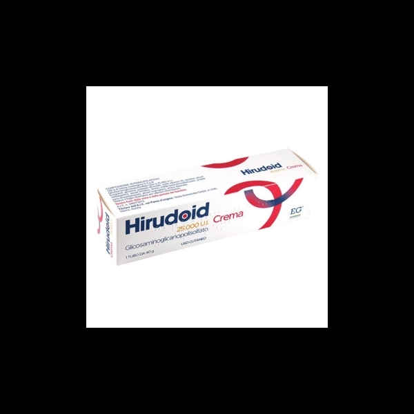 Foglio illustrativo: informazioni per l'utilizzator HIRUDOID 40.000 U.I. Crem Glicosaminoglicanopolisolfato Legga attentamente questo foglio prima di usare questo medicinale perché contiene importanti informazioni per lei. Usi questo medicinale sempre come esattamente descritto in questo foglio o come il medico o farmacista le ha detto di fare. Conservi questo foglio. Potrebbe aver bisogno di leggerlo di nuovo. Se desidera maggiori informazioni o consigli, si rivolga al farmacista. Se si manifesta uno qualsiasi degli effetti indesiderati, tra cui effetti non elencati in questo foglio, si rivolga al medico o al farmacista. Vedere paragrafo 4. Si rivolga al medico se non nota miglioramenti o se nota un peggioramento dei sintomi. Contenuto di questo foglio: 1. Che cos'è HIRUDOID e a cosa serve 2. Cosa deve sapere prima di usare HIRUDOID 3. Come usare HIRUDOID 4. Possibili effetti indesiderati 5. Come conservare HIRUDOID 6. Contenuto della confezione e altre informazioni 1. Che cos'è HIRUDOID e a cosa serve HIRUDOID contiene il principio attivo glicosaminoglicanopolisolfato, dotato di attività antinfiammatoria e antitrombotica, ovvero che impedisce la formazione di coaguli di sangue (trombi). HIRUDOID è usato per trattare: l'infiammazione di una vena che si trova sotto la superficie della pelle (flebite superficiale) o un coagulo di sangue che causa l'infiammazione di una vena (tromboflebite); il gonfiore causato da un rallentamento della circolazione sanguigna nelle vene (edema da stasi venosa); il dolore, l'infiammazione, il gonfiore e i disturbi trofici negli stati post-flebitici e varicosi; gli ematomi. 2. Cosa deve sapere prima di usare HIRUDOID Non usi HIRUDOID se è allergico al principio attivo, ad un eparinoide (medicinale con azione anticoagulante simile a quella dell'eparina) o ad uno qualsiasi degli altri componenti di questo medicinale (elencati al paragrafo 6). Avvertenze e precauzioni Si rivolga al medico o al farmacista prima di usare HIRUDOID. Interrompa il trattamento e contatti immediatamente il medico se si verificano reazioni allergiche dopo l'applicazione della crema. Altri medicinali e HIRUDOID Non sono note interazioni di HIRUDOID con altri medicinali. Informi comunque il medico o il farmacista se sta assumendo, ha recentemente assunto o potrebbe assumere qualsiasi altro medicinale. Gravidanza e allattamento Se è in corso una gravidanza, se sospetta o sta pianificando una gravidanza, o se sta allattando con latte materno chieda consiglio al medico o al farmacista prima di usare questo medicinale. Guida di veicoli e utilizzo di macchinari HIRUDOID non compromette la capacità di guidare veicoli o di usare macchinari. 3. Come usare HIRUDOID Usi questo medicinale seguendo sempre esattamente quanto riportato in questo foglio o le istruzioni del medico o del farmacista. Se ha dubbi consulti il medico o il farmacista. La dose raccomandata è 3-5 cm di crema 2-3 volte al giorno. Se necessario, soprattutto all'inizio del trattamento, può utilizzare una maggiore quantità di crema. Modo d'uso: Massaggi leggermente la parte trattata per favorire l'assorbimento della crema. Se soffre di un'infiammazione particolarmente dolorosa e in presenza di trombosi, massaggi delicatamente la crema sull'area cutanea interessata ed intorno ad essa, e copra con una garza di cotone o simili. Non applichi la crema su ferite aperte o sulle mucose. Non ingerire. Se usa più HIRUDOID di quanto deve Se usa accidentalmente una dose eccessiva di HIRUDOID, si rivolga al medico o al farmacista. 4. Possibili effetti indesiderati Non sono stati segnalati effetti indesiderati in seguito all'uso di HIRUDOID. Segnalazione degli effetti indesiderati Se manifesta un qualsiasi effetto indesiderato, compresi quelli non elencati in questo foglio, si rivolga al medico o al farmacista. Lei può inoltre segnalare gli effetti indesiderati direttamente tra¬mite il sistema nazionale di segnalazione all'indirizzo www.agenziafarmaco.gov.it/it/responsabili. Segnalando gli effetti indesiderati lei può contribuire a fornire maggiori informazioni sulla sicurezza di questo medicinale. 5. Come conservare HIRUDOID Tenere questo medicinale fuori dalla vista e dalla portata dei bambini. Non usi questo medicinale dopo la data di scadenza che è riportata sulla scatola dopo Scad. La data di scadenza si riferisce all'ultimo giorno di quel mese. Conservare a temperatura inferiore a 25°C. Non getti alcun medicinale nell'acqua di scarico e nei rifiuti domestici. Chieda al farmacista come eliminare i medicinali che non utilizza più. Questo aiuterà a proteggere l'ambiente. 6. Contenuto della confezione e altre informazioni Cosa contiene HIRUDOID Il principio attivo è glicosaminoglicanopolisolfato. 100 g di crema contengono 445 mg (pari a 40.000 U.I.) di principio attivo. Gli altri componenti sono cutina LE, trigliceridi a catena media, alcool miristico, isopropile miristato, bentonite, olio di rosmarino, alcool isopropilico, imidurea, fenossietanolo, acqua depurata. Descrizione dell'aspetto di HIRUDOID e contenuto della confezion: Crema per uso cutaneo di colore da bianco a beige pallido e con odore caratteristico. HIRUDOID è disponibile in confezioni da 50 g di crema in tubo di alluminio.